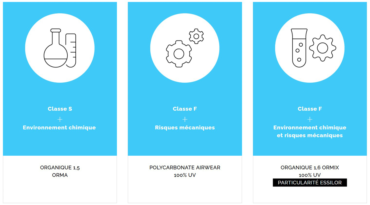Sur un poste de travail, en entreprise ou sur un chantier, les yeux sont exposés aux projections de particules, poussières ou débris pouvant provoquer des blessures graves. Les verres Essilor Pro-Safety® protègent efficacement contre les risques d’accidents oculaires. La performance visuelle est optimisée grâce à une personnalisation des équipements, adaptée aux besoins du porteur et à son environnement professionnel.