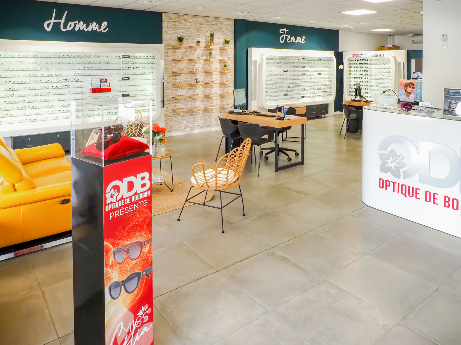 Situé à coté de la Clinique Vétérinaire de Bras-Panon, à proximité de la Boucherie-Charcuterie DUGAIN et à quelques mètres du marché forain, votre magasin vous propose les montures optiques et solaires qu’il vous faut pour briller au quotidien !