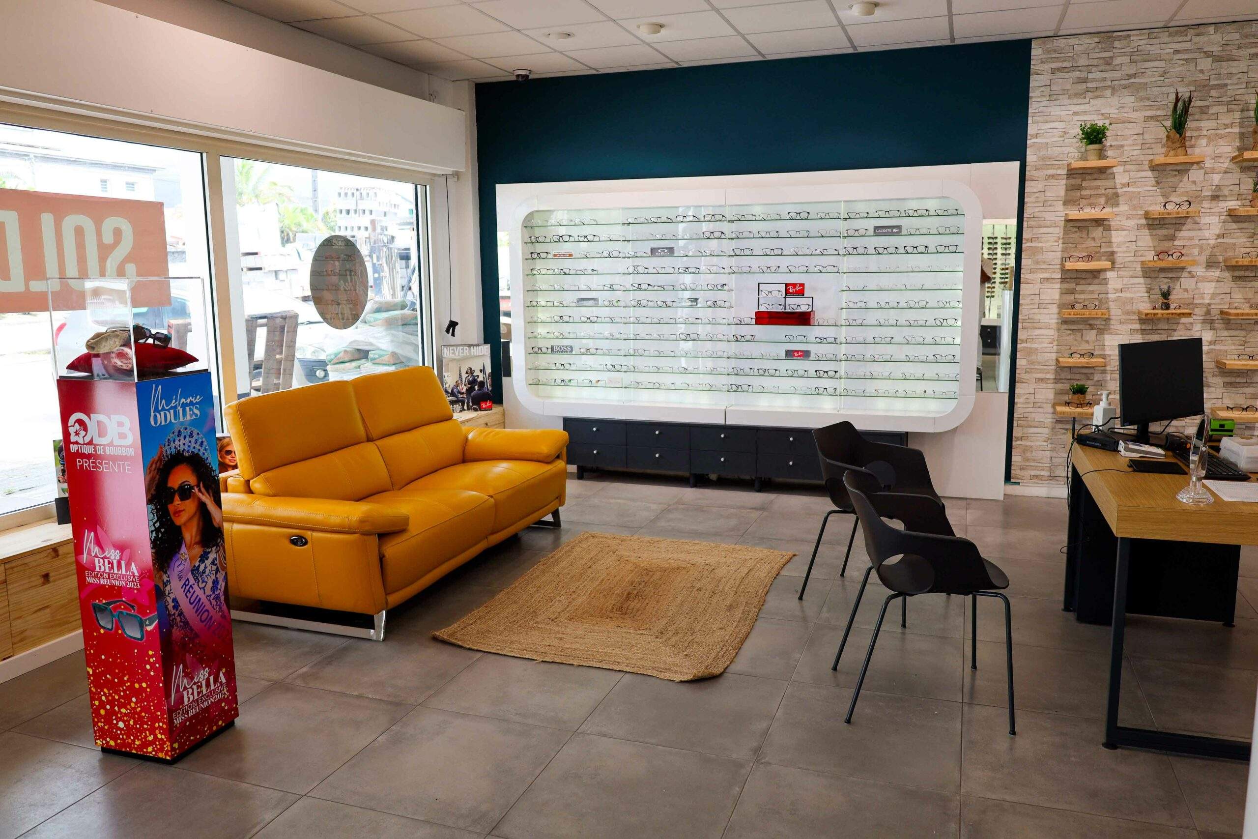 Situé à coté de la Clinique Vétérinaire de Bras-Panon, à proximité de la Boucherie-Charcuterie DUGAIN et à quelques mètres du marché forain, votre magasin vous propose les montures optiques et solaires qu’il vous faut pour briller dans votre quotidien !